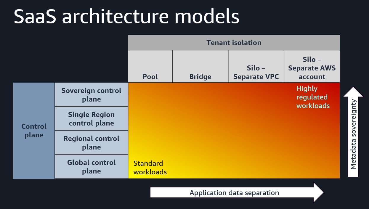Ultimately, we recommend that partners build flexibility into their platforms to be able to offer options to their customers for control plane and tenant isolation based on the type of workload. The following diagram depicts these architecture models.
