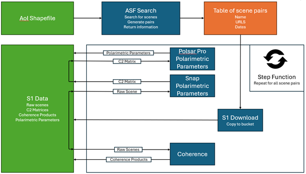 This modular architecture means that each processing stage is automated, reproducible, monitored, and scalable while remaining compliant with federal science and security requirements. The following image illustrates the algorithm details of Coherence Change Detection.