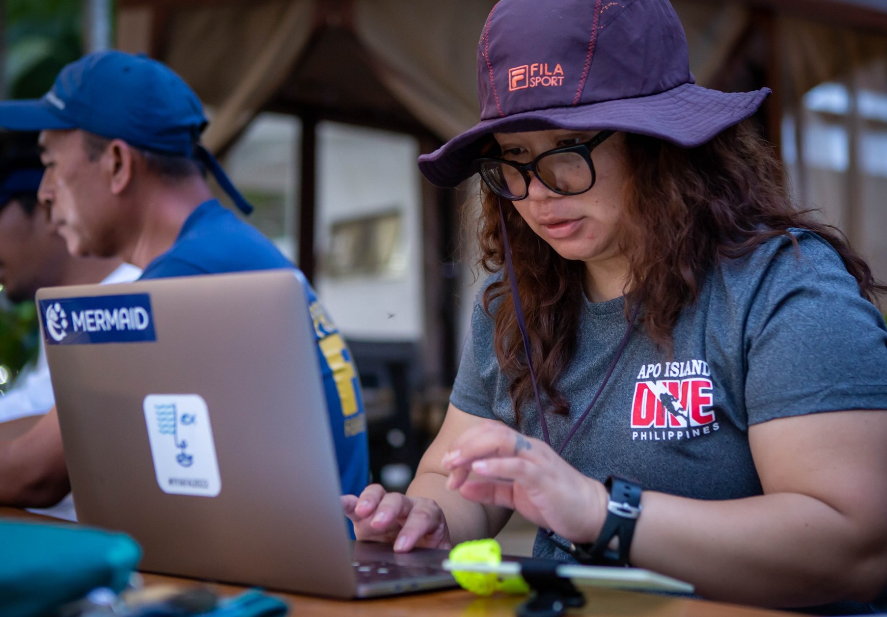 Using MERMAID, a scientist in the Philippines contributes real-time data from a resilient reef to the platform’s cloud-based monitoring system. Photo credit: Emily Darling