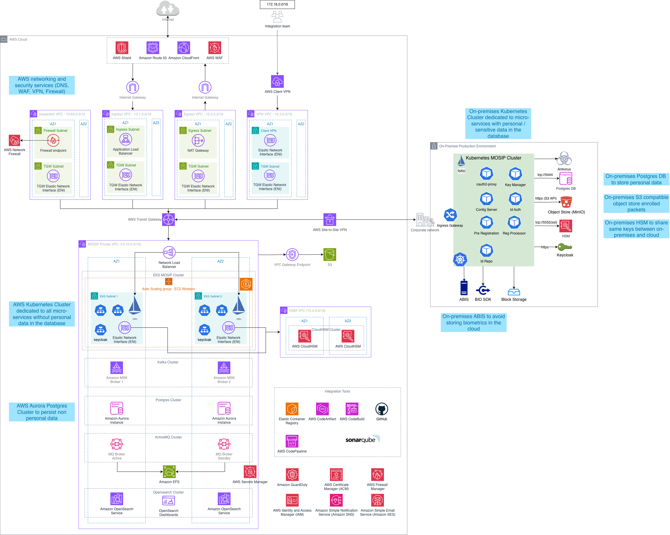Building on that foundation, this technical deep dive explores the intricate architecture, implementation patterns, and deployment models that make these business benefits possible. We’ll examine the specific AWS services powering this solution, detailed infrastructure configurations, security frameworks, and the four hybrid deployment options that address varying data sovereignty requirements. Whether you’re a technical architect, systems integrator, or government technology leader, this post provides the technical insights needed to understand and implement MOSIP on AWS effectively.