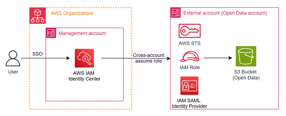 Researchers, software vendors, and government agencies often need to access external Amazon Web Services (AWS) accounts—such as those sponsored through the Open Data Sponsorship Program—to manage datasets or resources hosted in those environments. This becomes particularly relevant when organizations have established AWS Organizations with AWS IAM Identity Center enabled and need to extend secure access to AWS accounts that exist outside their organizational boundary. Maintaining strict security controls and alignment with organizational policies is crucial when integrating these external accounts. In this technical post, we walk you through the step-by-step process of securely integrating an external AWS account with AWS IAM Identity Center to enable single sign-on access.