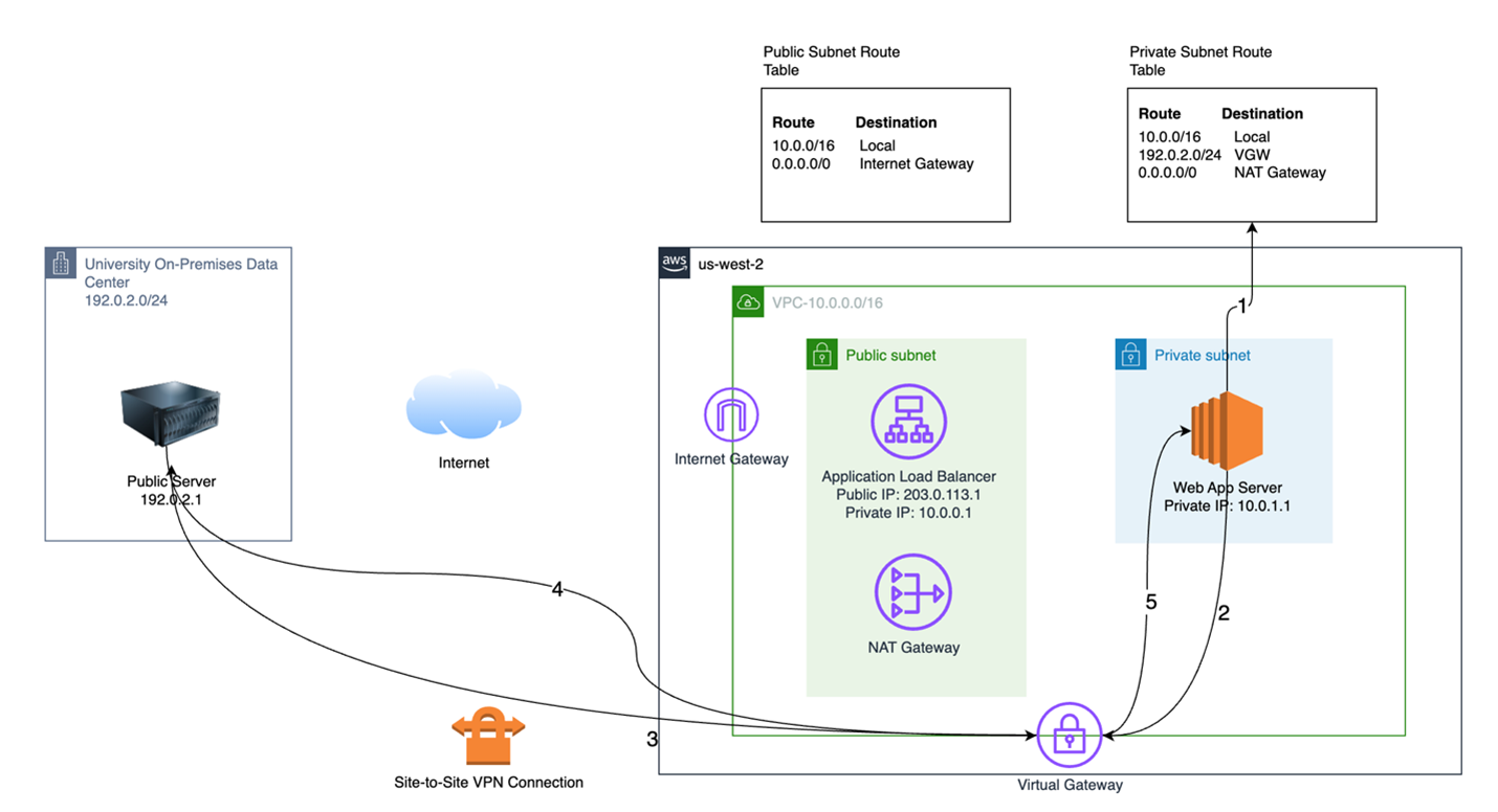 In this post, we look at asymmetric outbound network flows and how to remedy this routing for Amazon Web Services (AWS) workloads. Although this post focuses on higher education use cases, networking concepts such as placing Application Load Balancers (ALBs) in public subnets and keeping servers in private subnets while using NAT (Network Address Translation) gateways for outbound internet traffic, are widely used across many industries for their security and network segmentation capabilities.