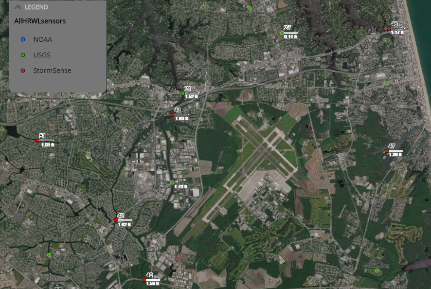 Virginia Beach Sensor #3 Dashboard via StormSense AWS Leaflet App