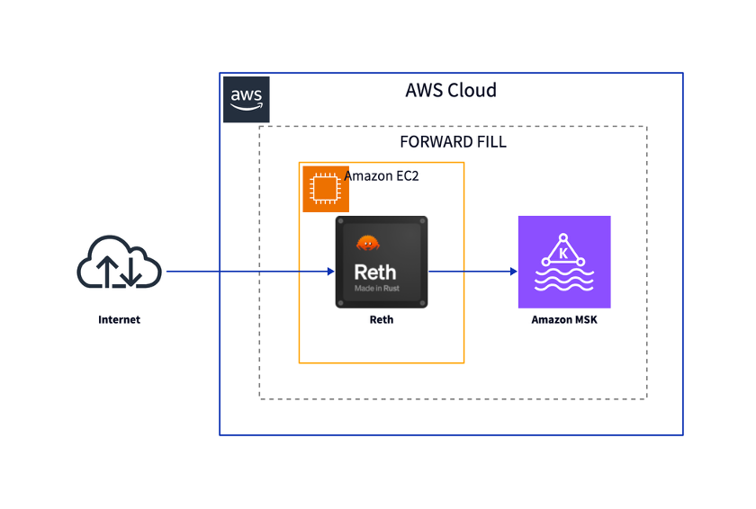 The following diagram illustrates the architecture of the forward filling component. It relies on the blockchain node’s capability to process re-orgs correctly.