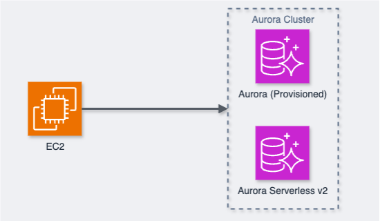 使用 EC2 持续 访问 Aurora 集群写节点时,进行故障转移操作,测试环境架构图如下:
