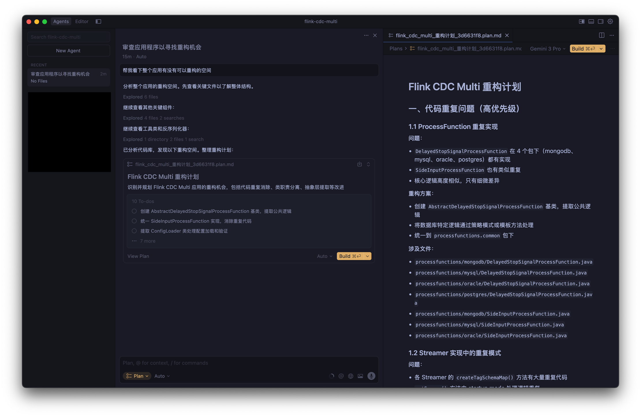 在这种模式下,对话框才是主流。左边显示的不是文件,而是你的对话记录,中间是对话窗口,以及和 AI 的整个对话过程,右边则是 AI 生成的执行计划。可能你的第一个反应跟我一样:啊这?代码呢?是的,这个模式完全颠覆了我们编程的范式,现在,虽然还是在「写代码」,但过程中我们甚至都不用太去在意代码了!这个变化是如此的剧烈,刚开始我是嗤之以鼻的。