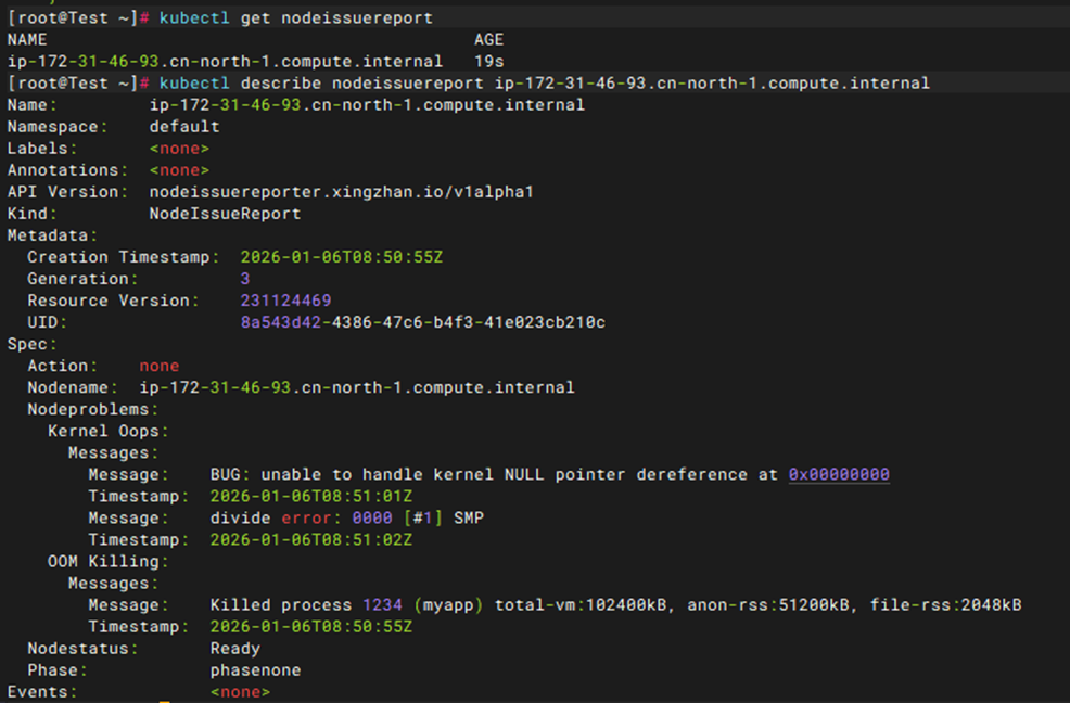 - 增强节点问题的可观测性与数据留存能力,通过引入 NodeIssueReport 自定义资源,对节点问题事件及其发生时间进行持久化记录。这使得运维人员可以对历史问题进行查询和汇总分析,并为后续的问题定位和根因分析提供数据基础