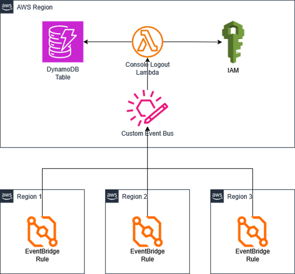 - 在中心区域部署的用于汇总登录事件的自定义Event Bus。