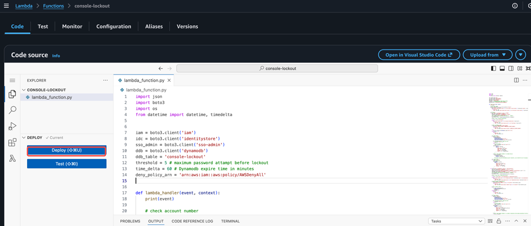 - 如果计数超过阈值,则对该用户进行锁定。对于IAM用户,给这个用户附加一个”DenyAll”策略(这个操作需要确保该用户没有达到可以附加的IAM Policy上限;也可以选择通过delete_login_profile完全关闭用户的控制台登录权限);对于Identity Center用户,取消其关联的所有权限集和组权限(Identity Center用户无法通过API直接禁止登录,但可以通过这种方式使其在Access Portal中无法获得任何账号的控制台权限)。需要注意的是,这些操作会影响当前用户的正常使用,应该结合实际情况决定如何处理用户的权限。