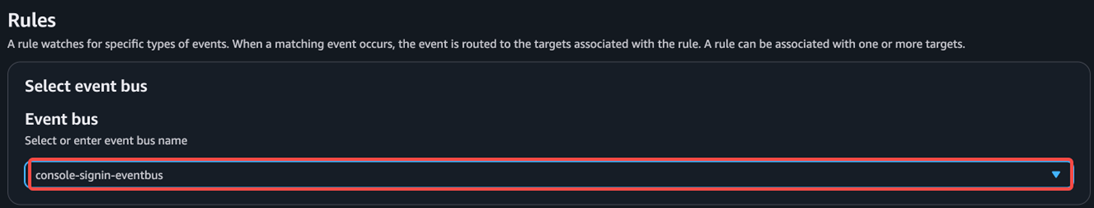接下来添加两条规则到这个event bus,其中IAM用户事件的规则为: