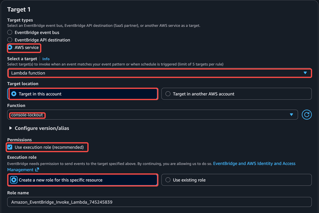 将这个规则的目标设置为之前创建的Lambda 函数: