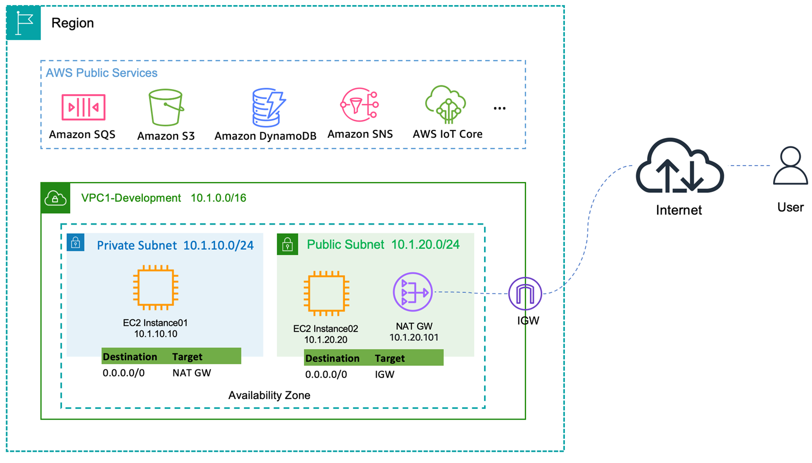 在AWS云环境中,VPC内的资源(主要是EC2实例)对公网IP地址有着多样化的需求场景。首先,这些资源需要访问AWS的公共服务,如Amazon S3、DynamoDB等,这些服务虽然位于AWS网络内,但需要通过公网端点进行访问。其次,EC2实例需要访问互联网以获取软件更新、与第三方API通信等。更重要的是,在大多数生产环境中,位于互联网的最终用户需要主动访问这些云上资源,例如访问Web应用、API服务、游戏或其他面向公众的服务。根据子网类型的不同,实现公网连接的方式也有所差异,主要分为公有子网(Public Subnet)和私有子网(Private Subnet)两种场景。