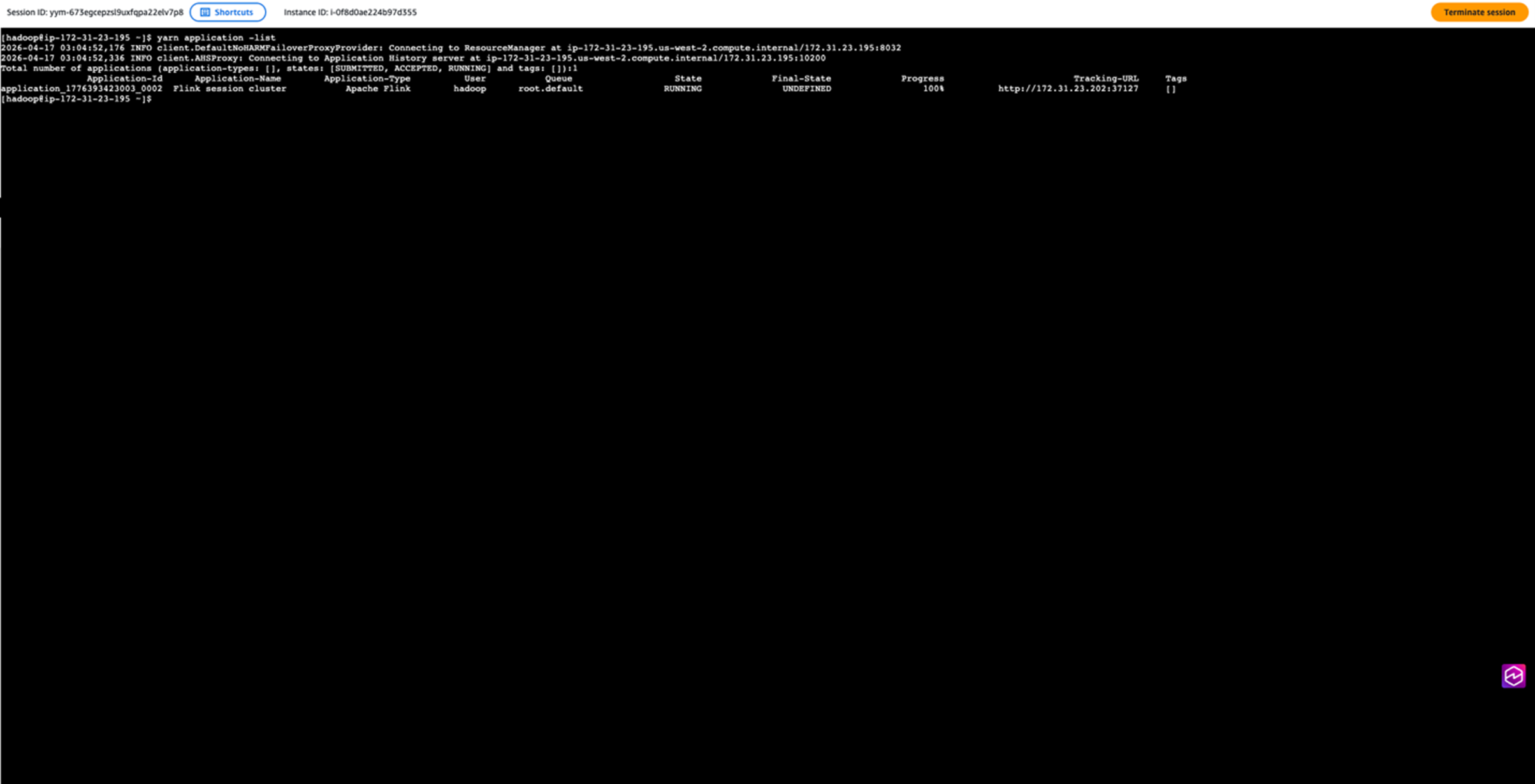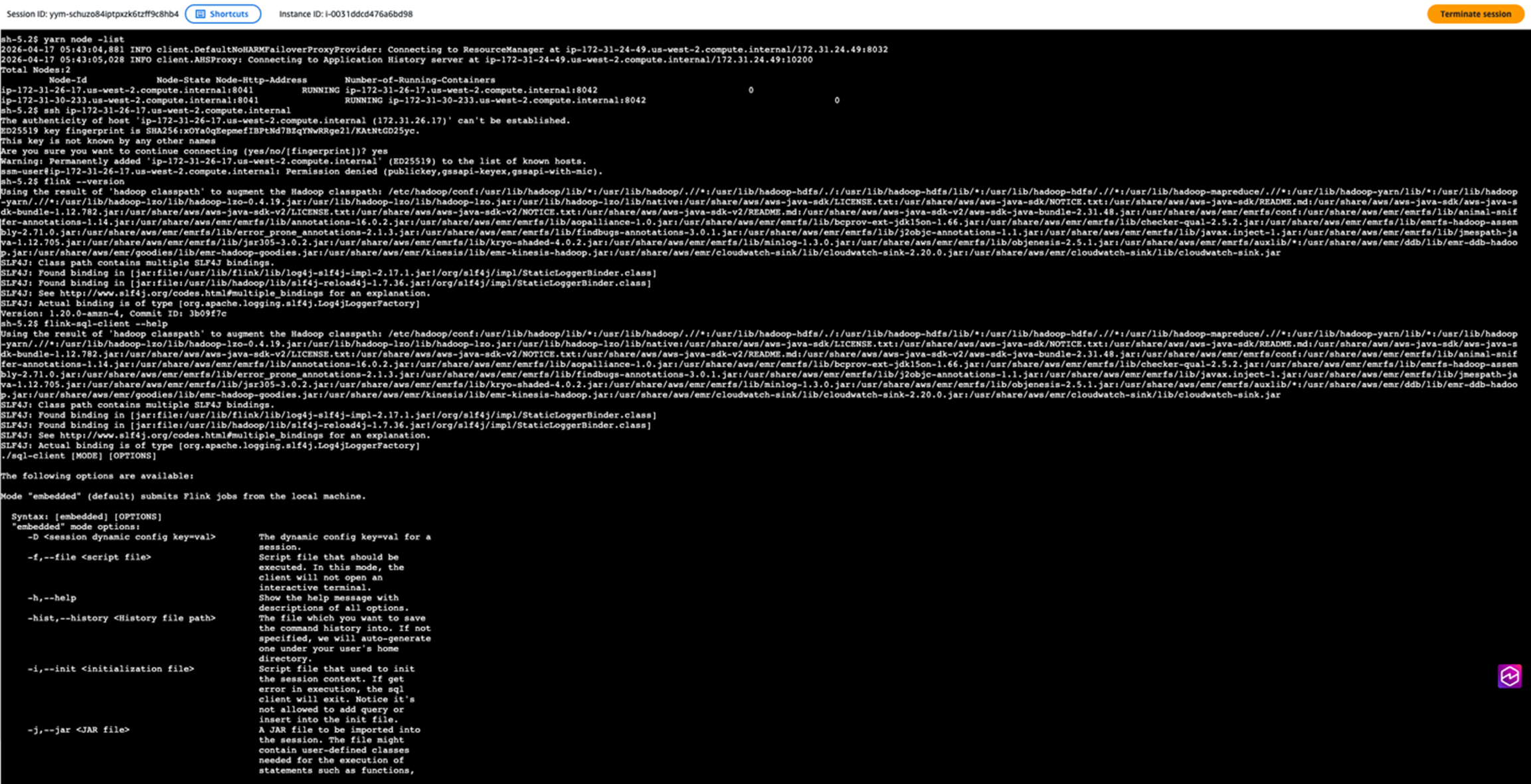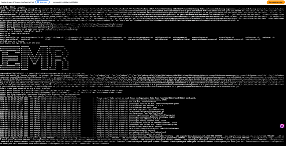 3.1. 步骤一:连接到已有的EMR Master 节点并验证 Flink