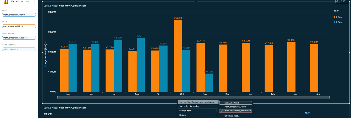 - `MoMComparison_MonthNum`:用于排序的数值字段,例如 1, 2, 3… 对应财年内的顺序