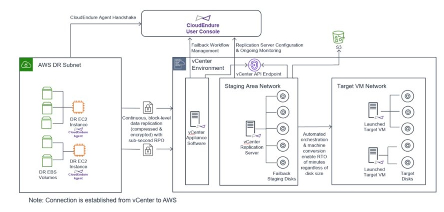 下载 CloudEndure 复制软件需要Failback client启动后可以访问 Amazon S3 存储桶,因此 AWS Replication Agent 应能够访问与 CloudEndure 结合使用的 AWS 区域的 S3 存储桶 URL 和暂存区域子网。