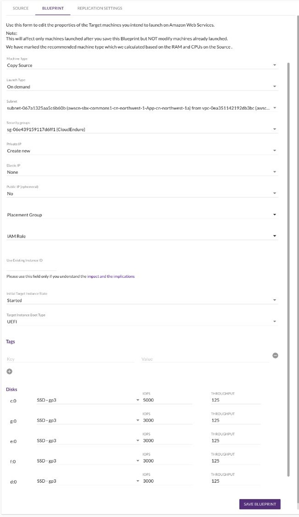 在代理安装期间由 CloudEndure 创建的原始启动模板可以作为默认设置。 另外还可以根据需求通过 CloudEndure 控制台进行更改。根据以下准则在 Amazon EC2 控制台中调整 IOPS(每秒输入/输出操作数):