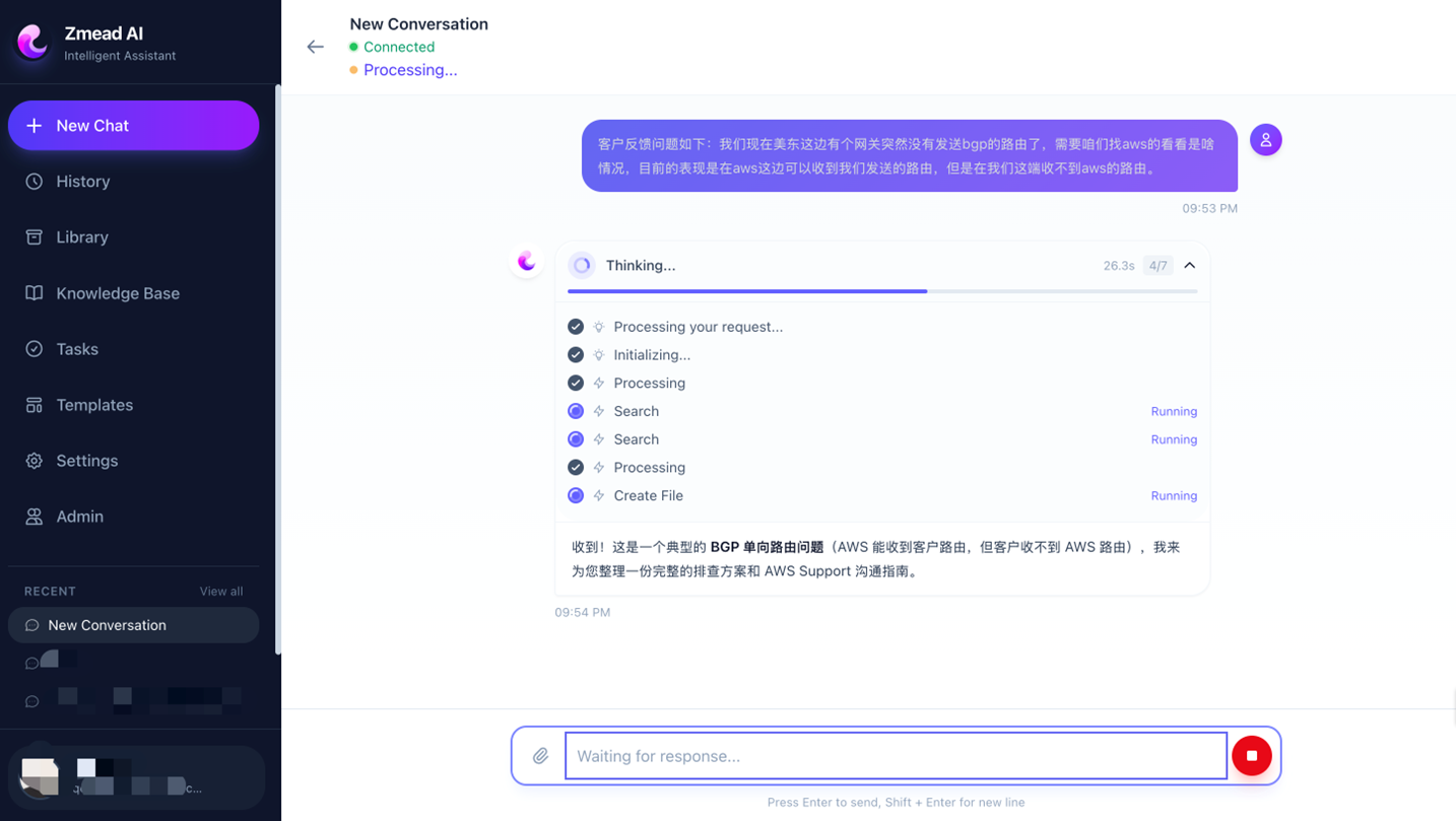 例如: – “给 Library 页面加上文件预览功能” – “Agent 生成架构图时使用 AWS 官方 SVG 图标” – “WebSocket 断连后自动重连,最多重试 3 次”