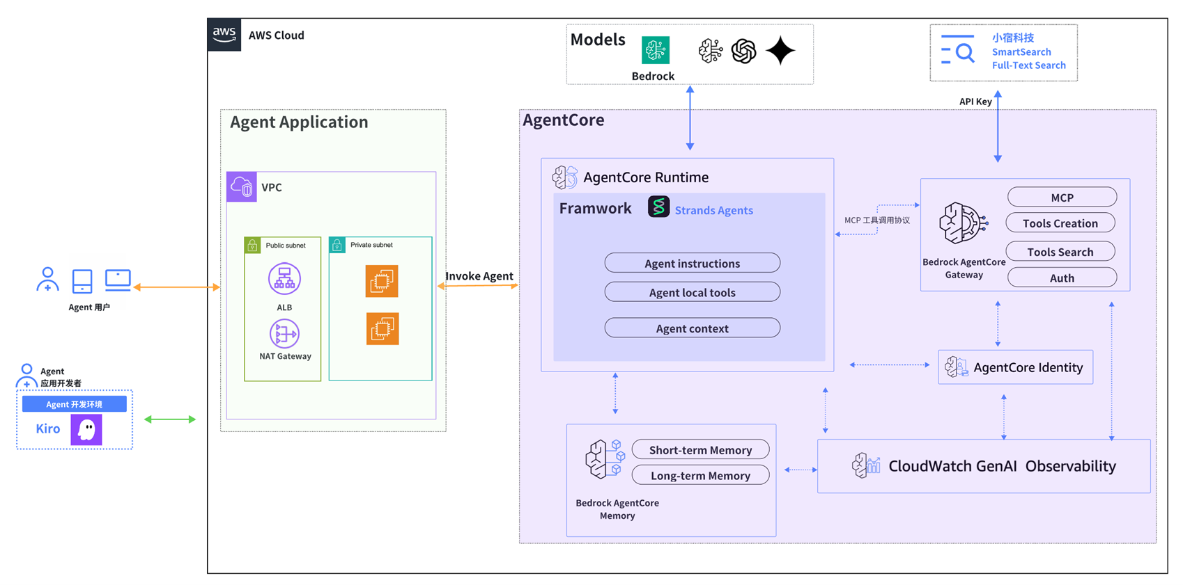 并通过AgentCore Gateway与小宿智能搜索的集成,方便的通过MCP调用小宿智能搜索,实现数据的高效处理和深度语义理解,显著提升了智能化水平。