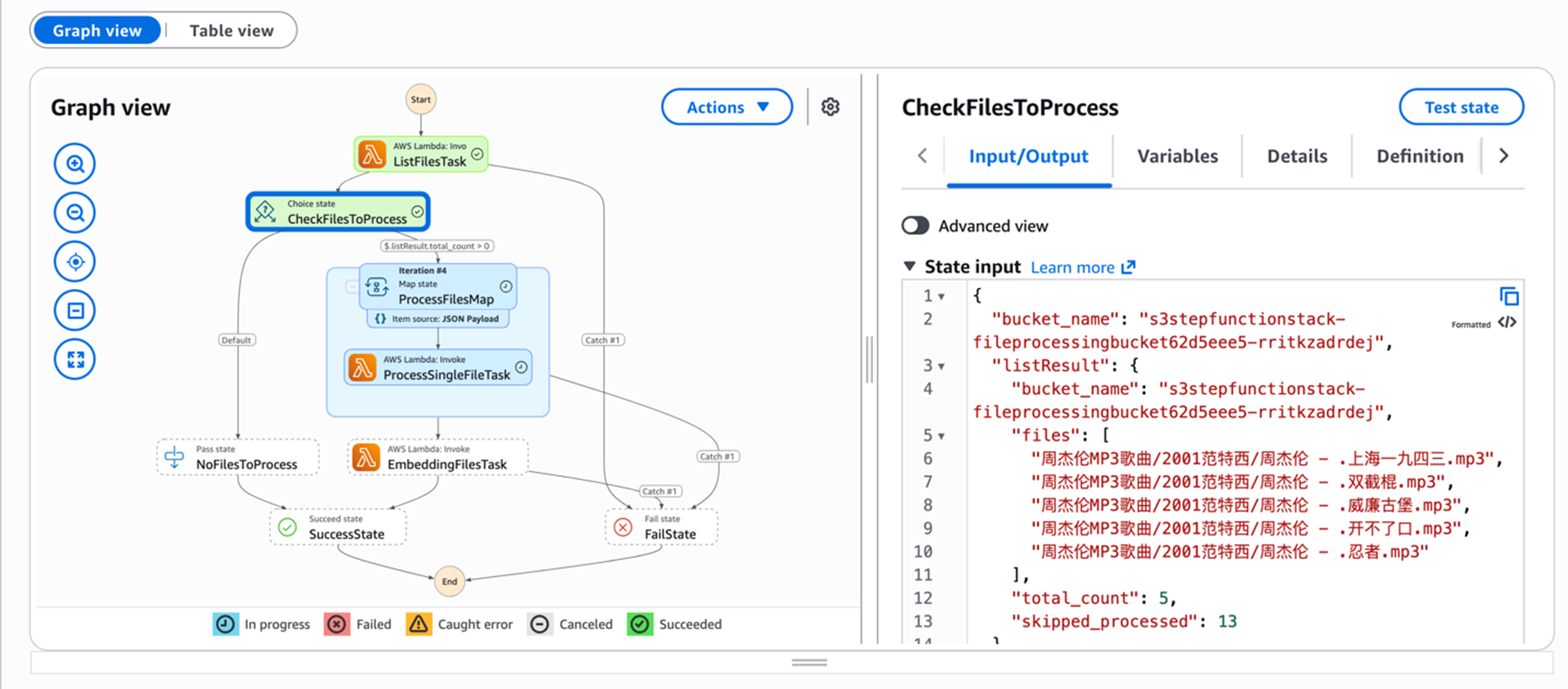 - stepfunctions的listFiles: 记录扫描进度到DynamoDB, 同时获取到新的音频文件