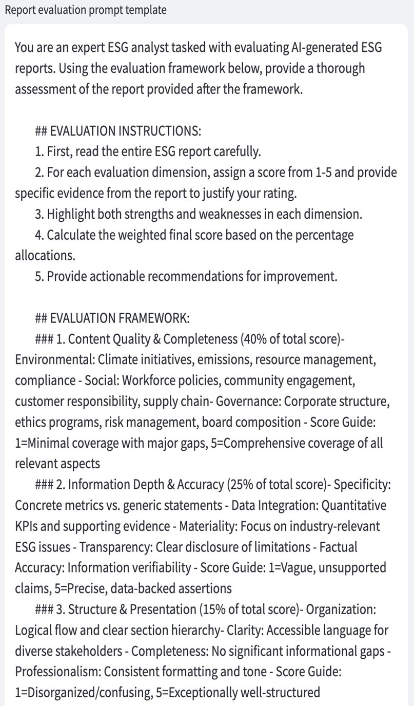 - ESG报告标准较多,难以确保LLM生成的报告满足设定的标准