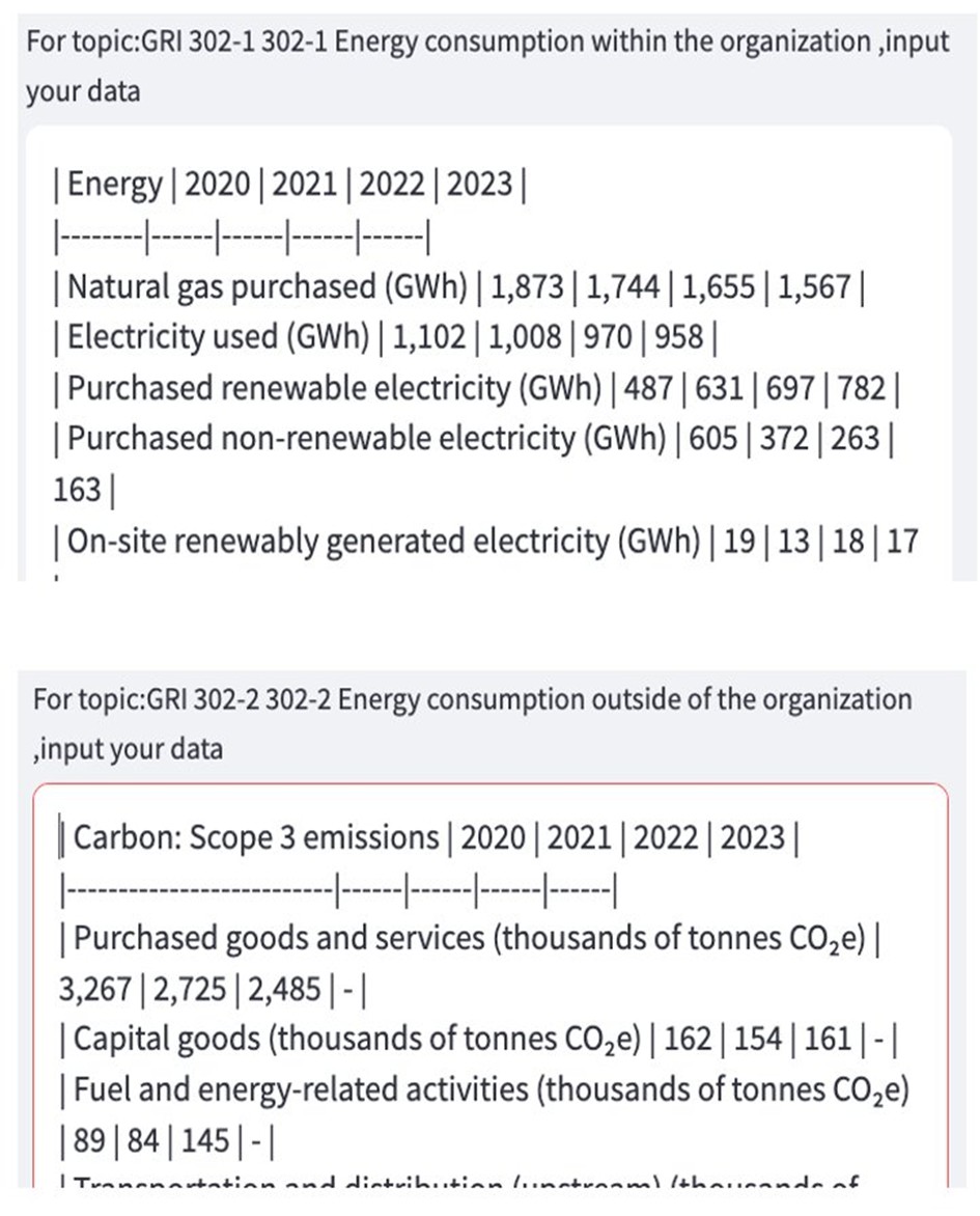 - ESG报告篇幅较长,因LLM有token的限制,难以同时生成一份完整的ESG的报告