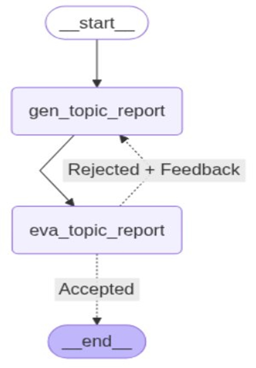 gen_topic_report_agent负责生成和评估各个细则报告,每个细则报告通过闭环评估系统确保质量达标: