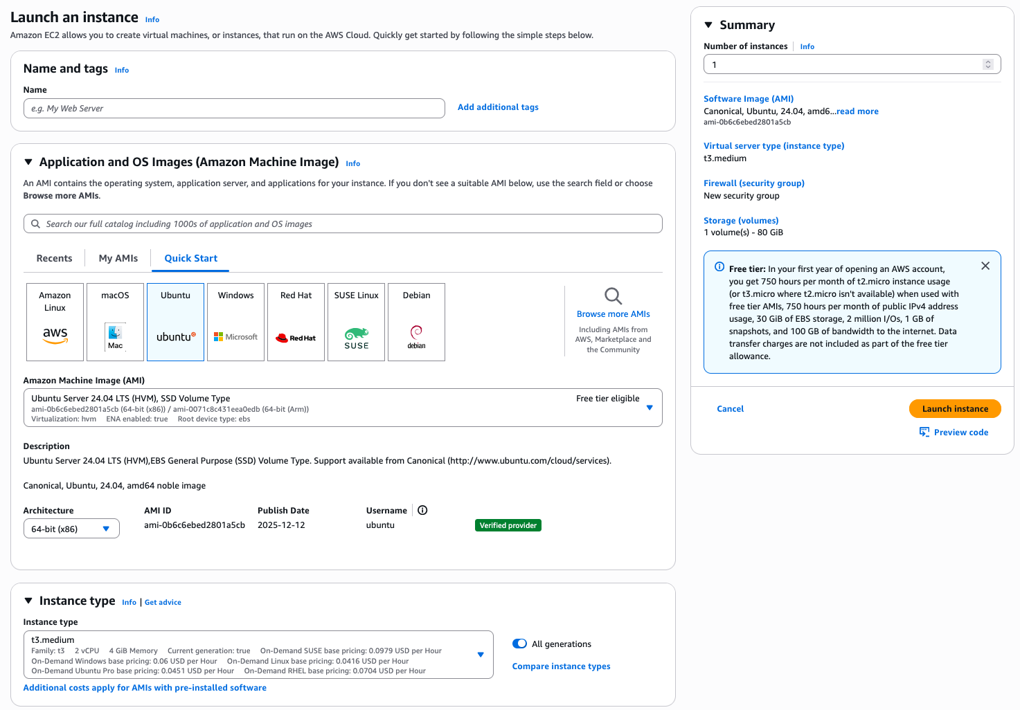 Instance type: t3.medium (您也可以选择苹果实例:mac2.metal)