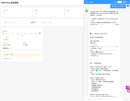 Flink Agent(监控专家): – 专注于 Flink 作业监控和分析 – 提供工具:获取作业列表、收集指标、分析健康状态 – 调用 AI 分析器进行深度分析 – 生成优化建议