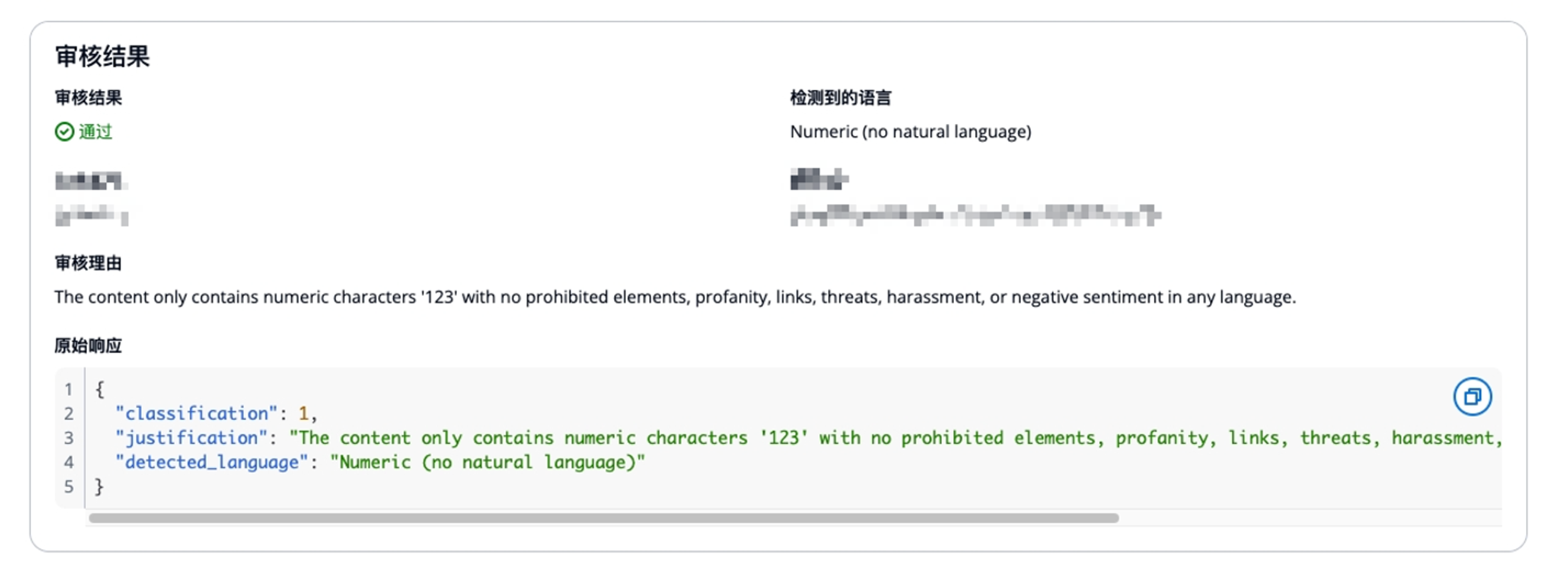 在冷启动阶段,这个提示词的准确率并不算高,容易出现 灰色语境误判(例如把二次元梗误判成色情内容),或者 多语言覆盖不足(对阿拉伯语、西班牙语等的判定不稳定)。但它为后续优化奠定了基础。