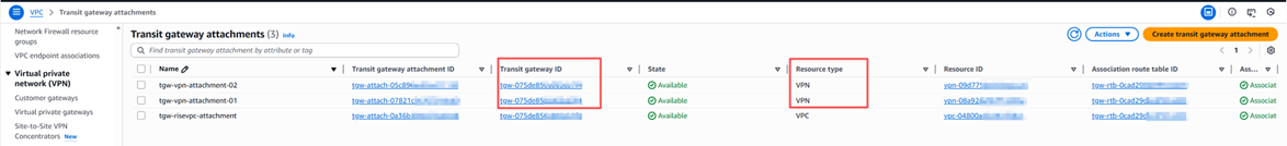 - Transit Gateway VPN Attachment:代表 VPN 与 TGW 之间的逻辑绑定关系。用户创建的 Transit Gateway VPN Attachment 在 Amazon 会自动随之创建一个 VPN Connection