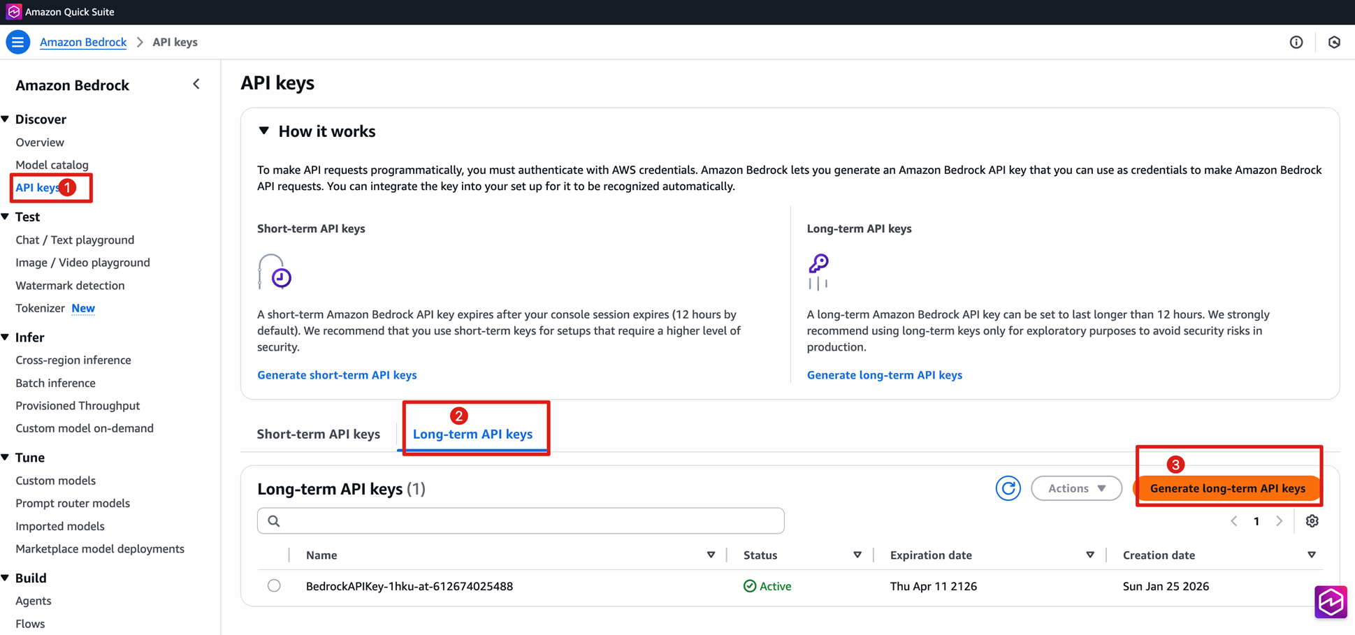 - 创建Bedrock API key