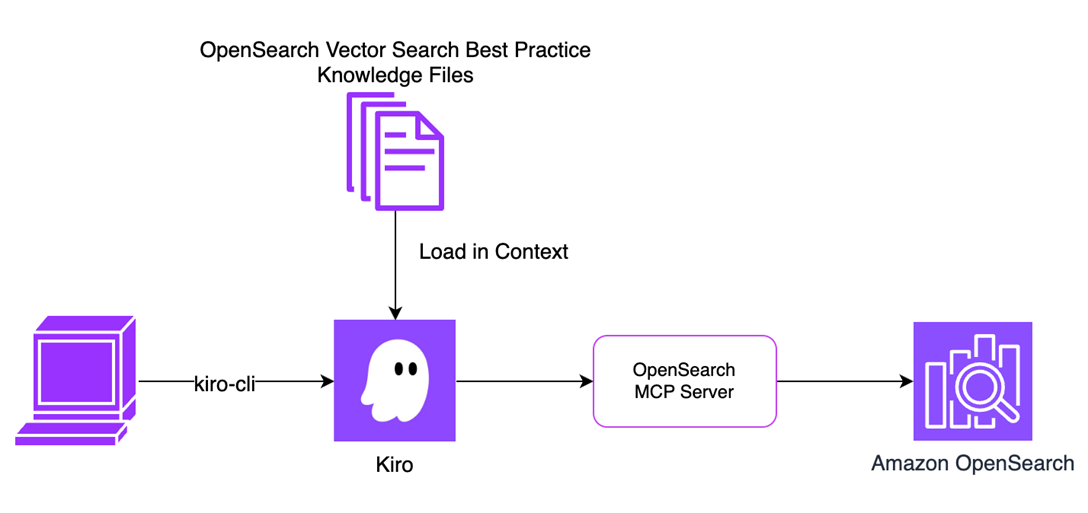 现在,通过结合 Kiro CLI 的 AI Agent 能力和 OpenSearch MCP Server,我们可以彻底改变这一现状。下面通过实际案例展示如何使用 Kiro CLI 来优化向量搜索配置和性能。