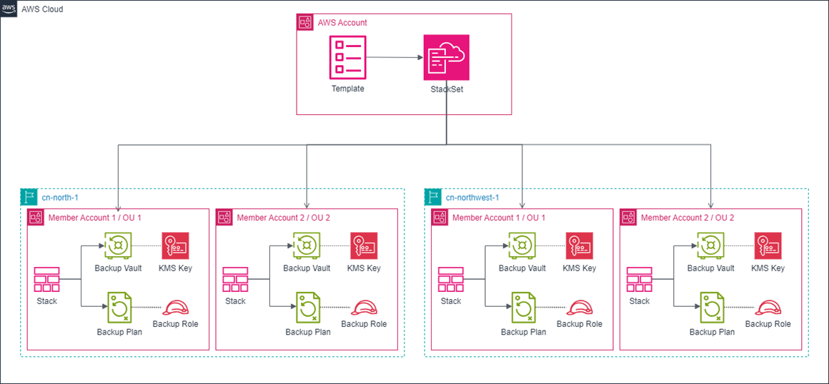 Amazon Backup 是一项完全托管的服务,可以轻松地跨 Amazon 服务、云端和本地集中并自动执行数据保护。使用此服务,您可以一站式配置备份策略并监控 Amazon 资源活动。但目前Amazon Backup在中国区暂未上线跨账户管理功能,也未与Amazon Organizations 集成以提供备份策略功能,因此,当用户需要为大量Amazon账户添加统一的备份计划时,必须每个账户逐一创建,这不仅存在大量重复操作,且难于统一管理。