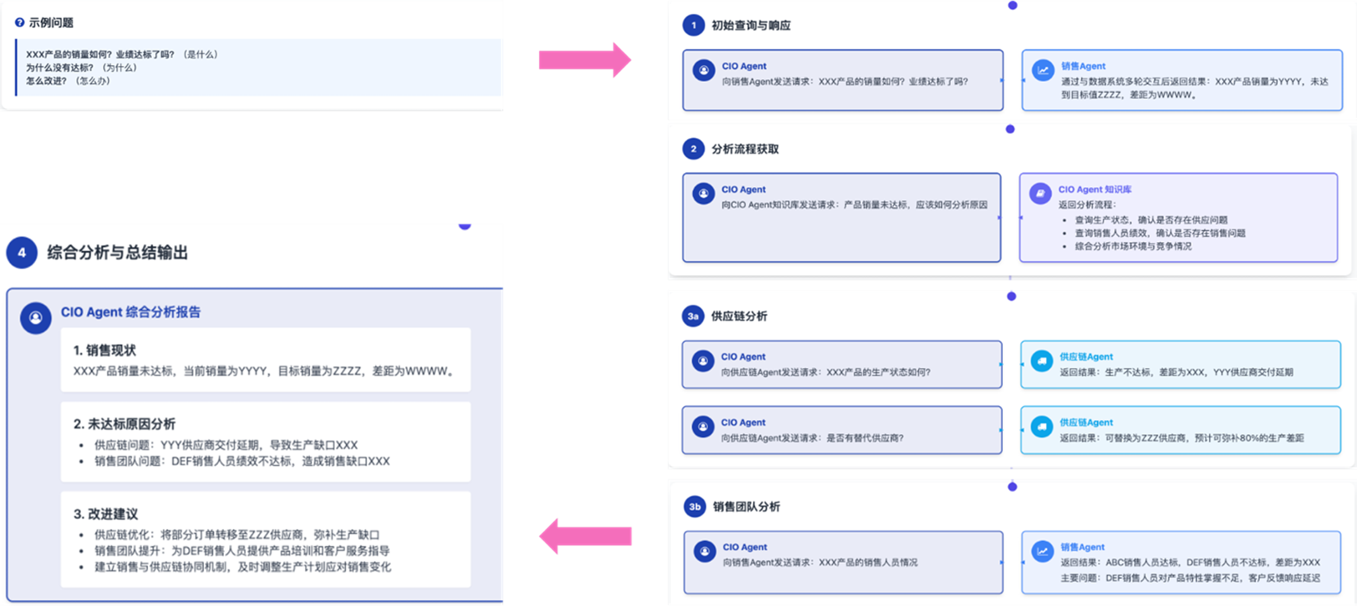 - 销售专家Agent则向OMS专家Agent请求”新产品订单数据”,并直接获取销售报表数据