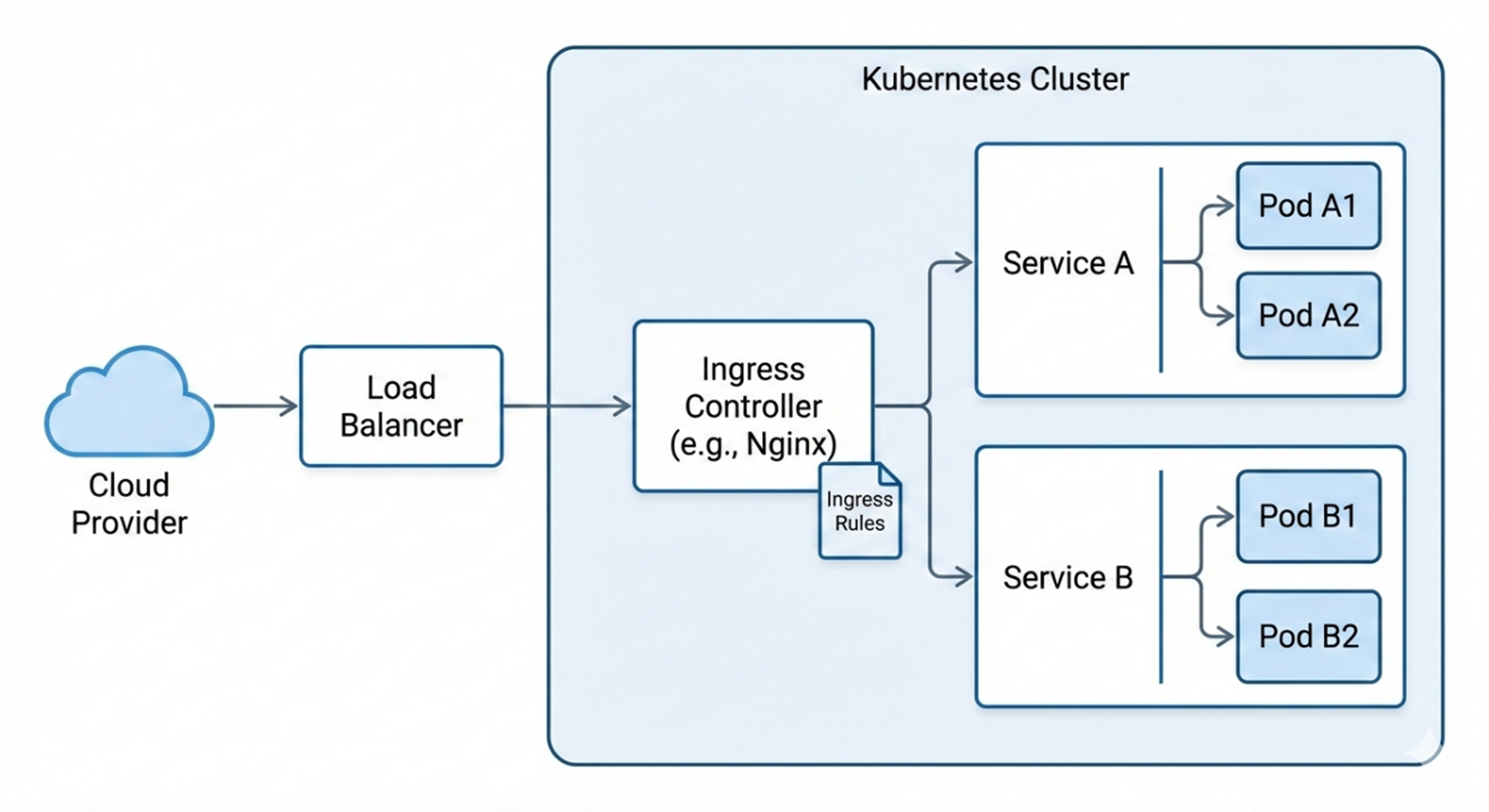 常见的 Ingress Controller 包括 Ingress-NGINX、Traefik、HAProxy 或者云厂商提供的负载均衡器(如 Amazon Load Balancer Controller)等。
