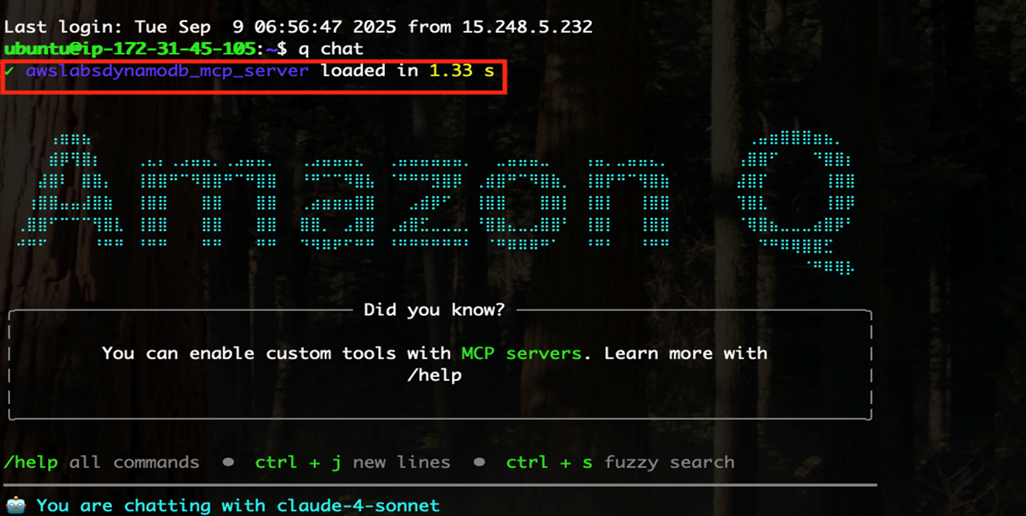 重新运行Q CLI (q chat) MCP Server已经成功集成到Q CLI(如下图):