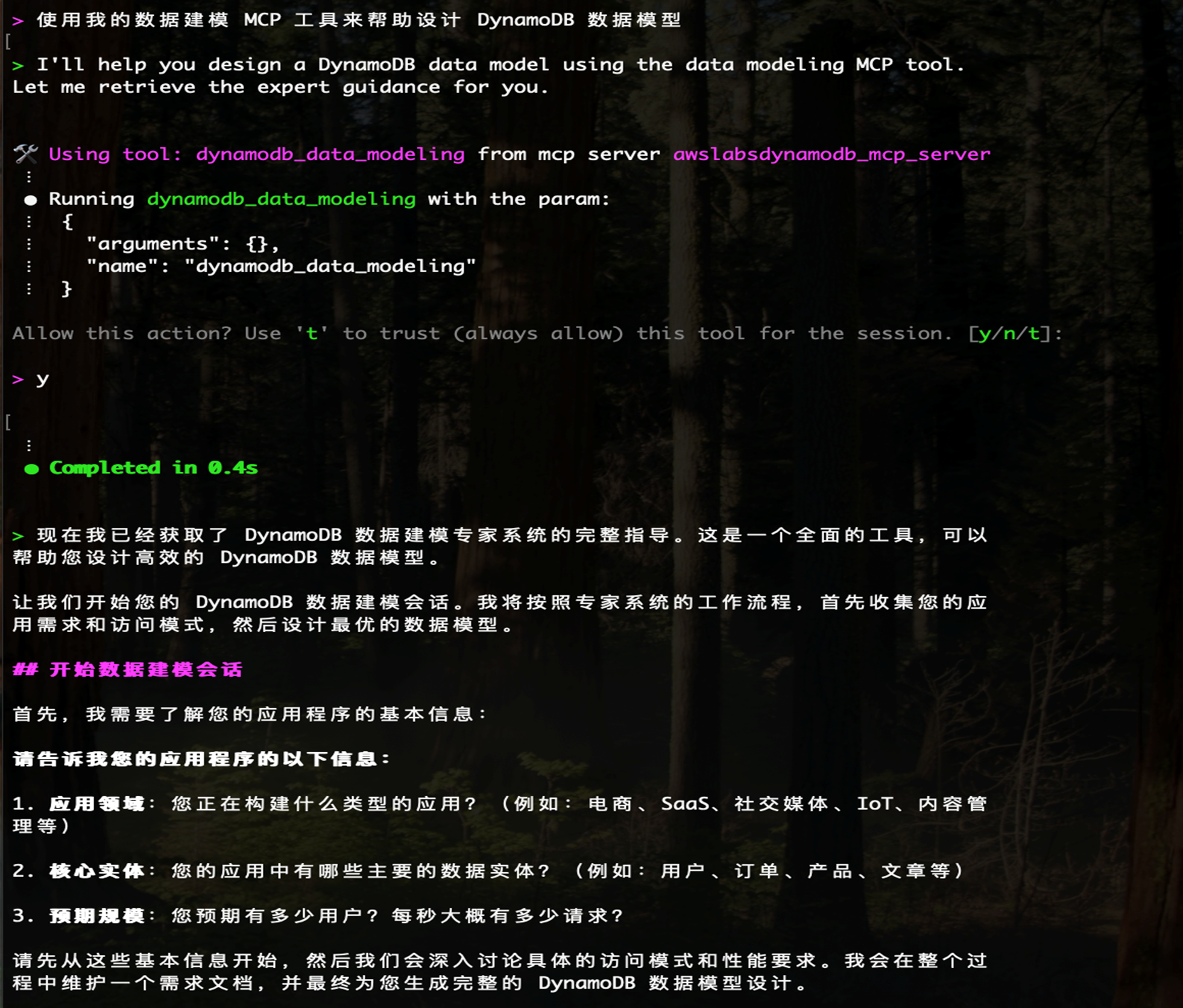 备注:DynamoDB MCP 可能会提示更多的调研问题 :