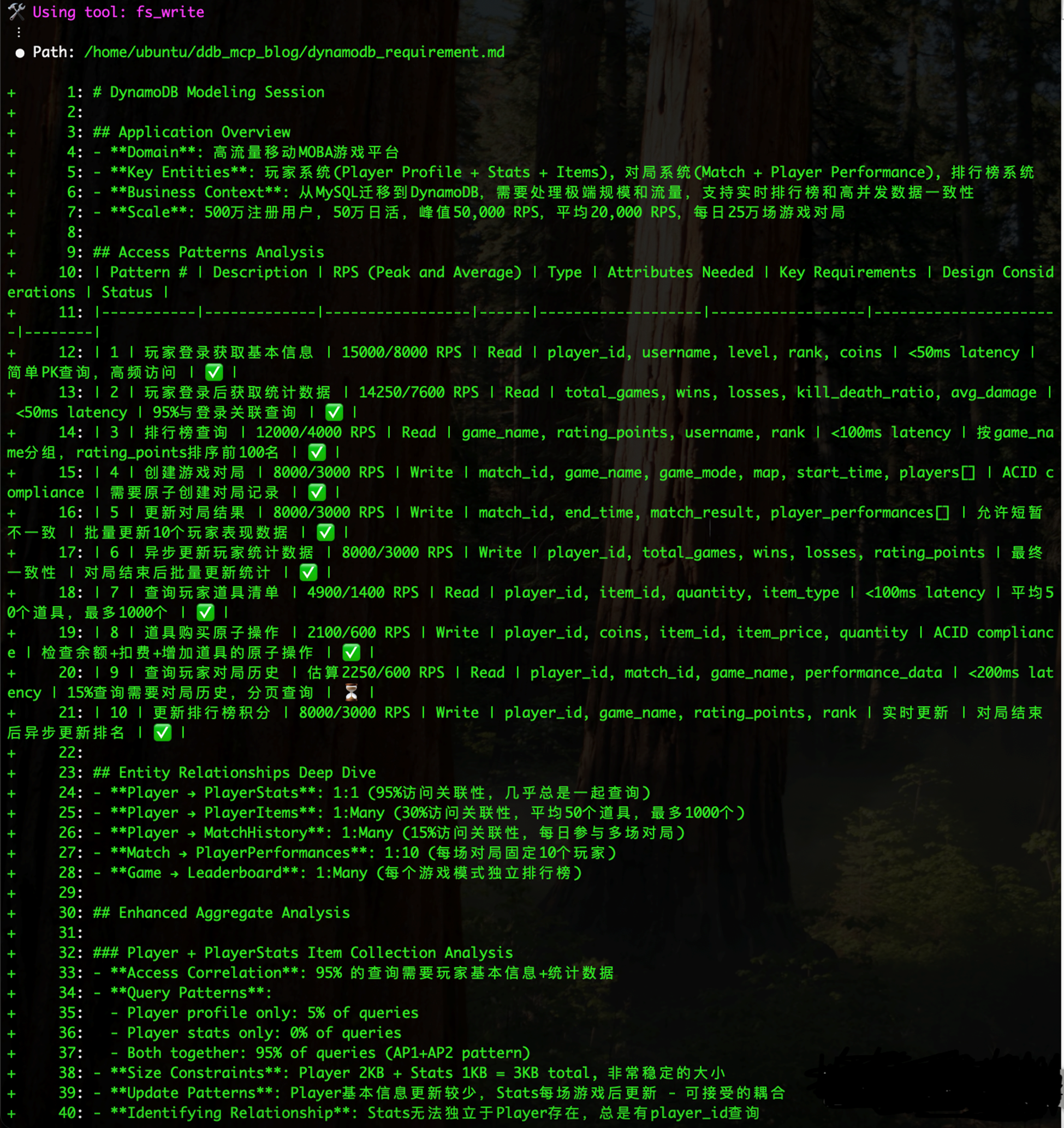 步骤3:DynamoDB MCP 会基于输入的调研信息 创建模型需求文档 dynamodb_requirement.md