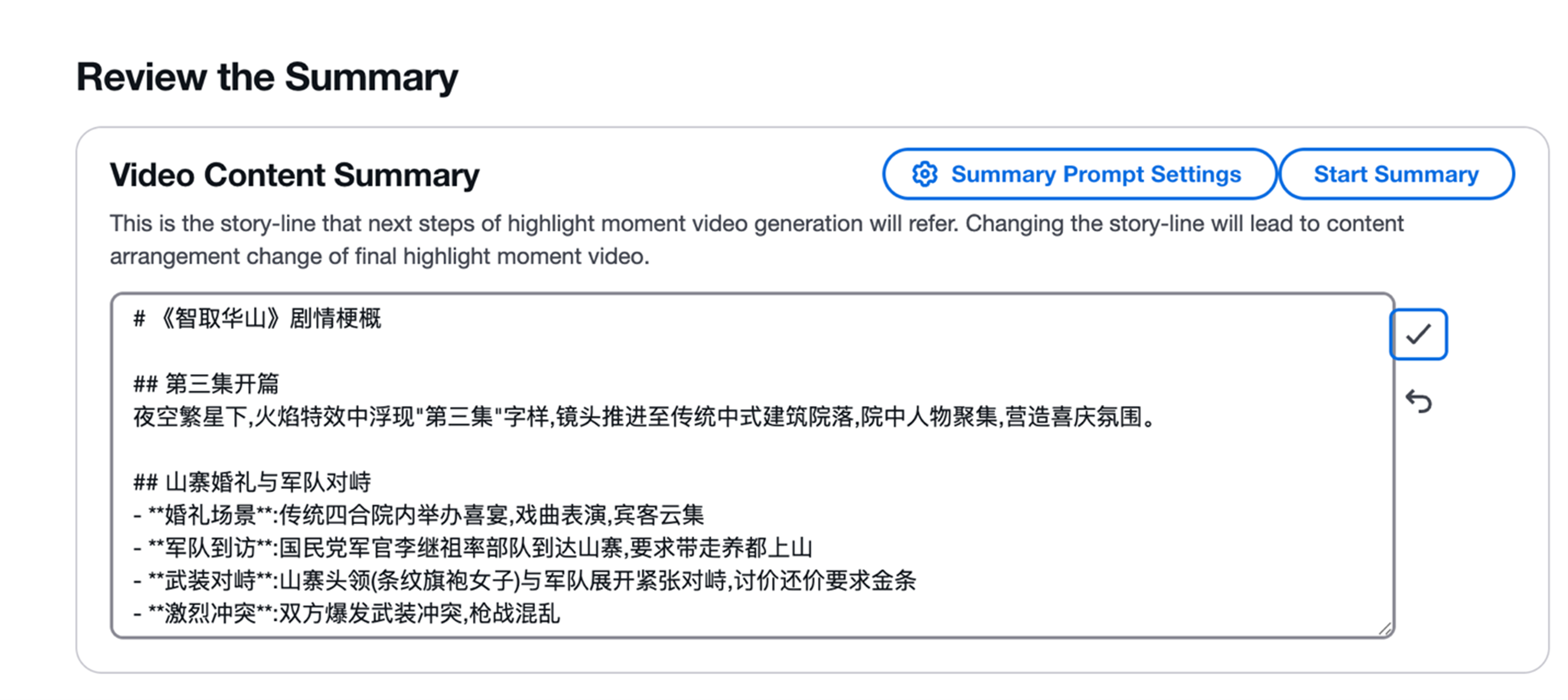 媒体娱乐、广告营销、零售电商等行业的客户拥有大量的视频资源,如网剧、纪录片、访谈和创意素材等。为满足不同观众群体和分发渠道的需求,需要对这些视频资源进行大量的编辑和再创作。对于中长视频,需要对内容总结、剪辑、翻译、提取精彩片段等;对于短视频,需要增加特效、变换、重新配音等。要完成这些工作,通过传统的视频工具链将耗费大量的人力和时间。