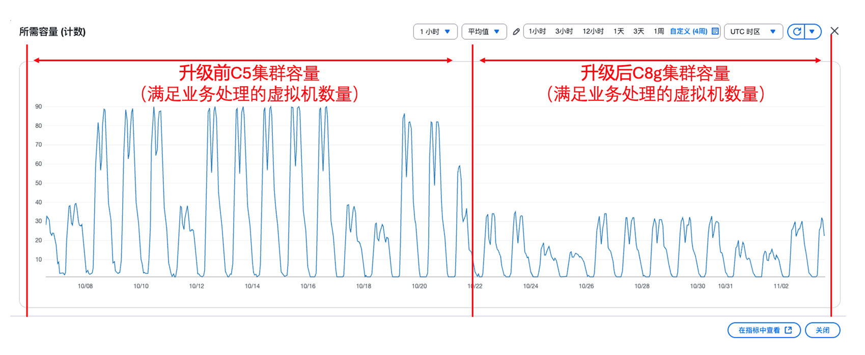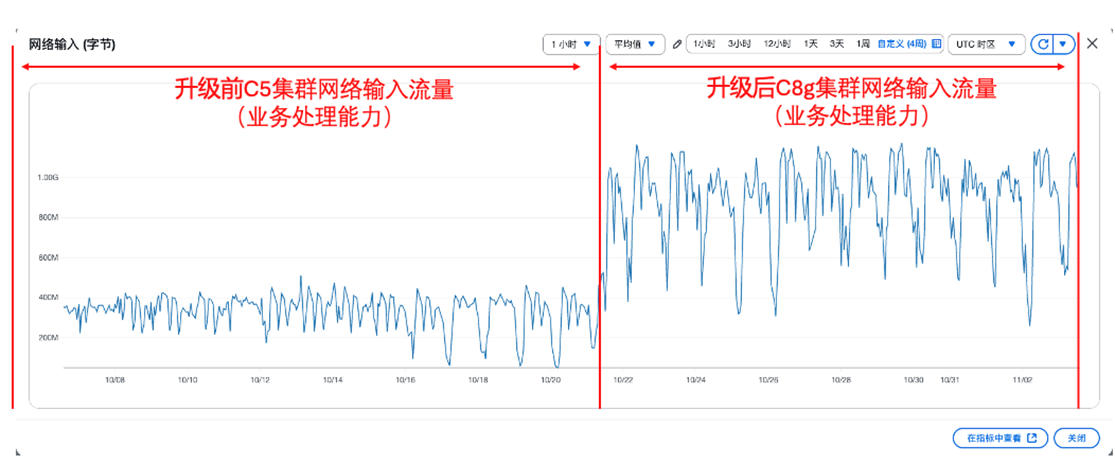 - 根据核心业务与性能数据,将所有 30+ 台 C8g 实例部署上线,此时已经可以承载原近百台的C5集群的业务流量。