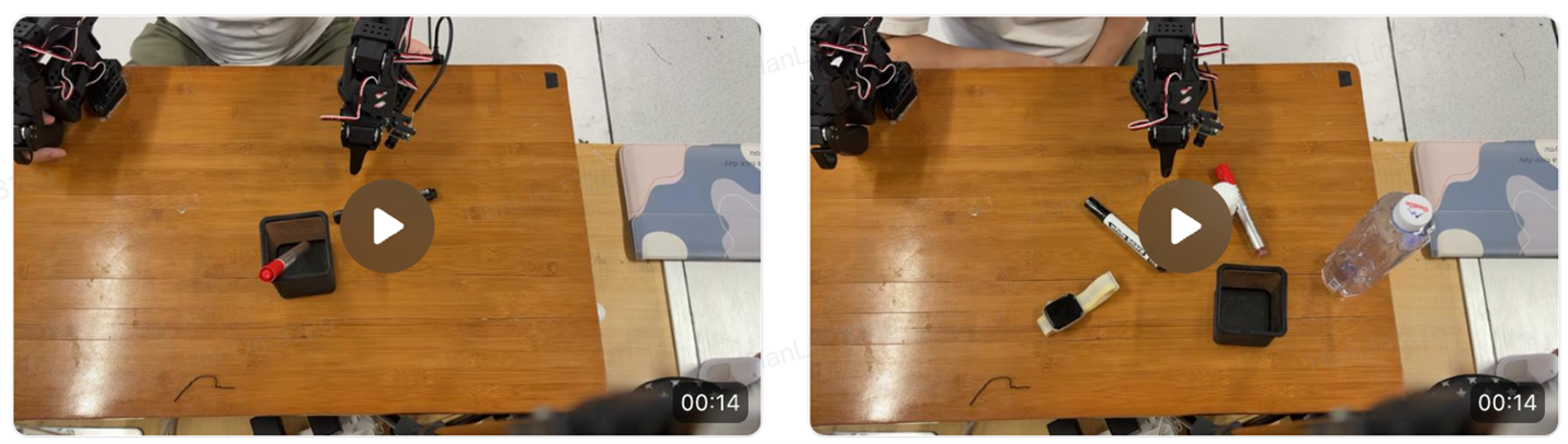 数采过程中要注意慢慢平滑的操作,不可过于快速的完成一个任务。采集之后的数据将保存在~/.cache/huggingface/lerobot/{repo_id}下面,可以打开这个目录来查看每条数据的采集效果,在这里采集红黑两种颜色笔的数据,每个笔采集50条,其中每个笔有10条数据位置大致一定,20条数据笔的摆放位置随机,20条数据桌面有少量其他物品干扰,采集过程参考这个视频。