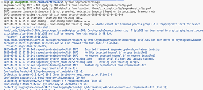 接着便可以在Bash中运行以下命令来配置LeRobot所需要的依赖(使用的lerobot源码是我修改之后的,仅添加了本地ServerClient,其他部分与官方源码一致)。