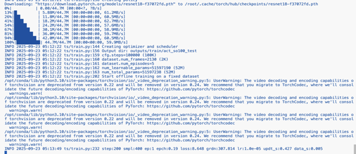 将这整个文件夹全部复制进RDK-S100开发板板端,并将修改工具包中bpu_act_infer.py文件里的模型路径(PS: 这里的模型路径是整个bpu_output文件夹),接着运行如下的命令即可开始使用BPU推理,演示视频浏览链接。
