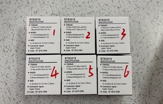 拿到机械臂配件,首先将Follower和Leader臂的物料进行区分,要注意的是Follower机械臂使用的是12个ST-3215-C001(7.4V)1:345齿轮比的电机,而Leader臂不同关节使用的电机型号有所不同,电机型号区分如下图及下表: