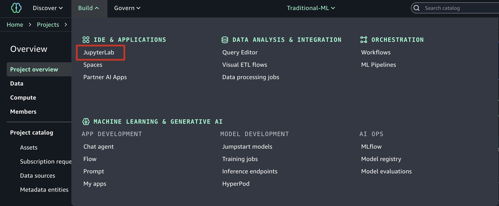 下面我们开始配置Sagemaker Unified Studio → JupyterLab, 如下图所示
