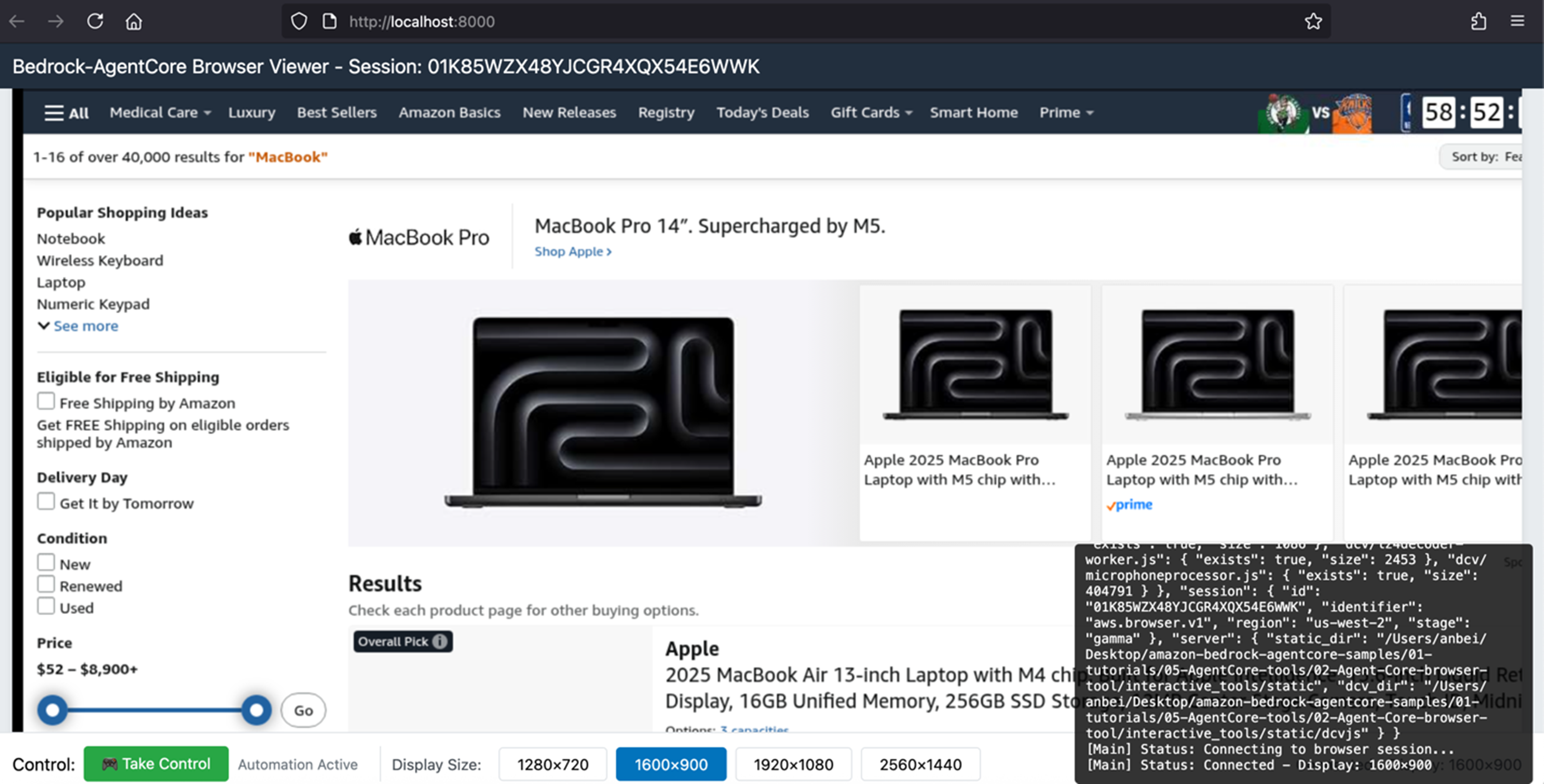 通过 Browser Use 与 AgentCore Browser Tool 的结合,AI 仅需接收高层级目标,即可自主分解出页面导航、元素识别、数据提取、购物车操作、数值计算和结果验证等具体步骤,充分体现其从高维目标到低维执行计划的自主规划和执行能力。