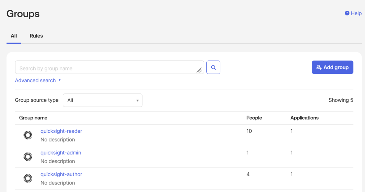 - QuickSight分配权限的时候必须按照Group,所以必须把Okta的Group使用Push Groups功能同步过来,。