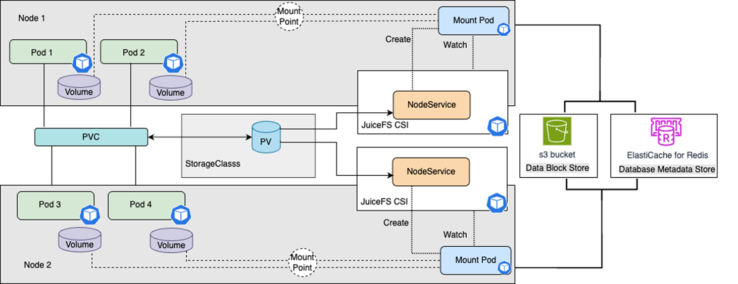 本文将从实际使用方式的三个环节进行详细说明,并首次对 JuiceFS CSI Driver on EKS部分进行系统性描述。