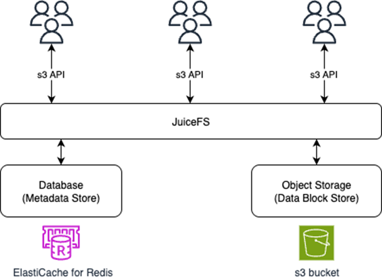 部署方式 | 需要依赖外部元数据引擎(Redis/MySQL等) | 不依赖外部元数据引擎,与EKS集群独立存在 | 不依赖外部元数据引擎,自动化分层管理 |
