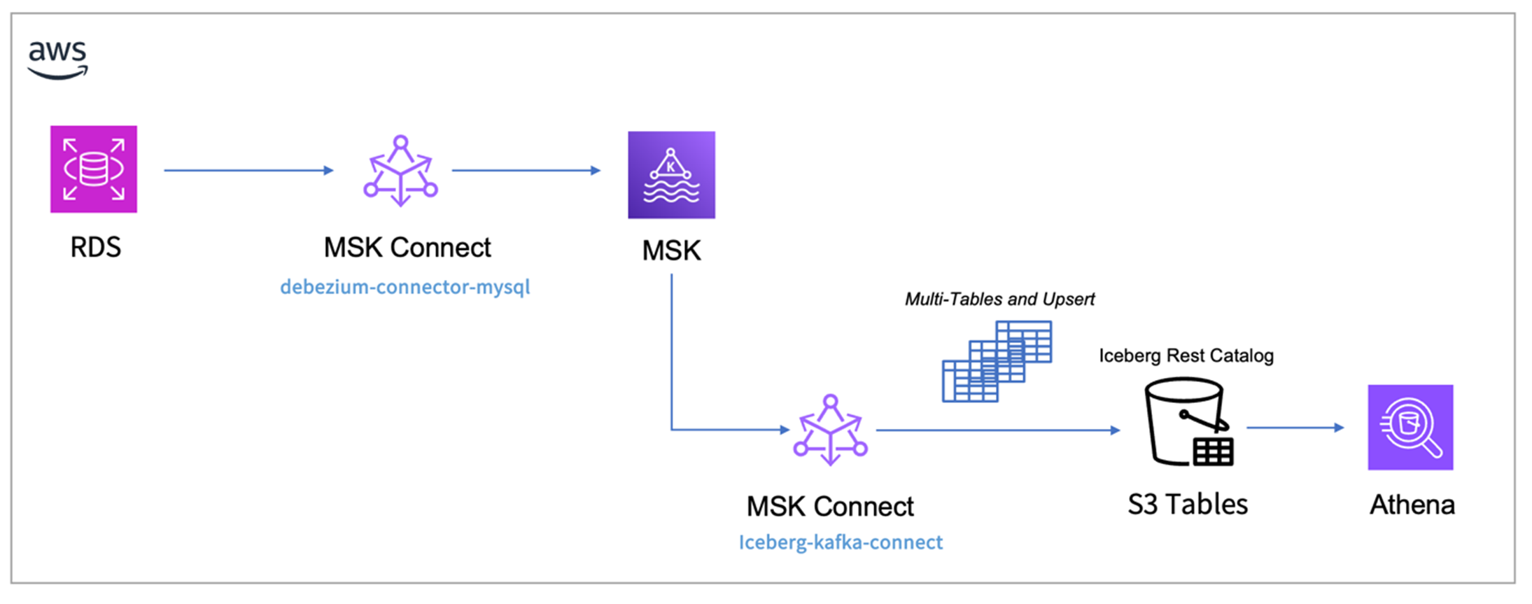 - Iceberg Kafka Connect:负责将 MSK 数据同步到 S3 Tables